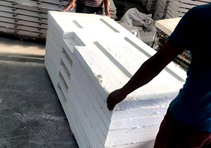 、煙道板,主要成份為硅微粉、活性高純氧化鎂、氯化鎂、抗堿玻纖布、柔性極佳的植物纖維、不燃質(zhì)輕的珍珠巖、粉煤灰、化學(xué)穩(wěn)定立德粉、高性能改性劑經(jīng)板材成型機滾壓成板材,將板材割成需要的大小,再拼接成組合式高強耐火排煙道。